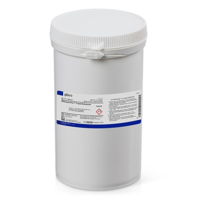 Efficient-Pro DPM Feed Enhancer has been formulated as a chemically defined, animal-origin-free cell culture feed supplement used in the bioproduction of mAbs and other therapeutics in traditional batch and fed-batch bioprocessing workflows, particularly in combination with CHO-K1 cell line variants. Efficient-Pro DPM Feed Enhancer is a balanced formulation designed to meet the metabolic needs of mAb production and does not contain growth factors or insulin to support batch-to-batch consistency and production efficiency. It has been shown to improve productivity in a CHO-K1-GS cell line when paired with Efficient-Pro Feed 3 and Efficient-Pro Medium.