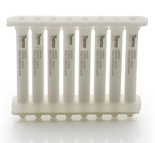 Other POROS ion exchange resins, as well HIC and affinity resins, are also available in this RoboColumn format. All POROS high performance chromatography resins have a unique pore structure that provides excellent mass transport for high capacity and resolution over a wide range of flow rates.
