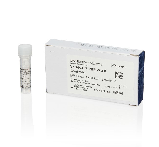 VetMAX PRRSV 3.0 对照品适用于靶向北美和欧洲猪繁殖与呼吸综合症病毒 (PRRSV) 和 Xeno RNA 的多通路一步法逆转录 PCR (RT-PCR) 测定试剂。对照品以即用型单管预混溶液的形式提供。