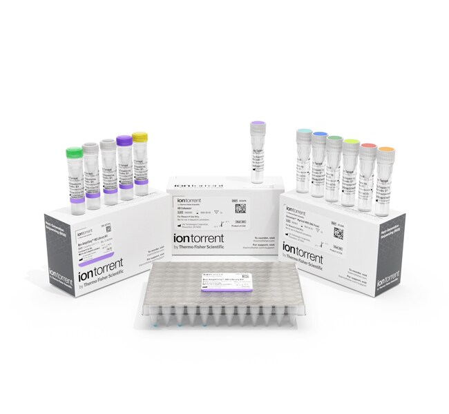 该检测试剂盒包括3个 Ion AmpliSeq HD 寡核苷酸引物池(1个双池 DNA 检测组合和1个单池 DNA 微单体型分型检测组合)和足以对多达24份样品进行测序的 Ion AmpliSeq HD 文库制备试剂。在 Ion 540 芯片上可以同时对4份 DNA 样品进行测序,在 Ion 550 芯片上可以同时对6份 DNA 样品进行测序。Ion GeneStudio 测序芯片(Ion 540 或 Ion 550)和测序试剂必须单独订购。