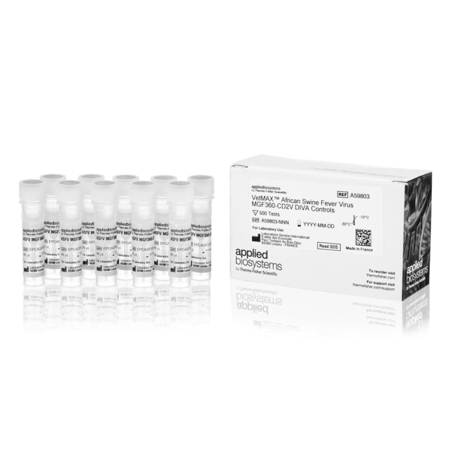 The VetMAX African Swine Fever Virus MGF360-CD2V DIVA Controls are synthetic positive controls used in the real-time PCR amplification of CD2V and MGF360-14L genes of African swine fever virus.