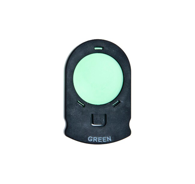 Condenser sliders are used to improve illumination under certain conditions and several are available for the EVOS imaging systems, including a diffuser slider, pinhole slider, and meniscus sliders. Due to variances in sample size, color and thickness, actual slider use may differ from suggestions. This green slider is intended for brightfield applications at all magnifications to enhance phase-contrast.