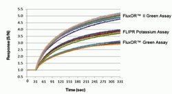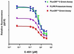 FluxOR™ II 绿色钾离子通道检测试剂盒是高通量筛选(High Throughput Screening,以下简称 HTS)钾离子通道和转运体活性的下一代溶液。FluxOR II 绿色钾离子通道检测试剂盒利用了钾通道对铊离子的可透过性。其采用了改良的铊敏感荧光指示剂染料,可获得较大的信号窗口,显著提高检测的灵敏度。此外,检测步骤有“清洗”或“无清洗”两种形式。