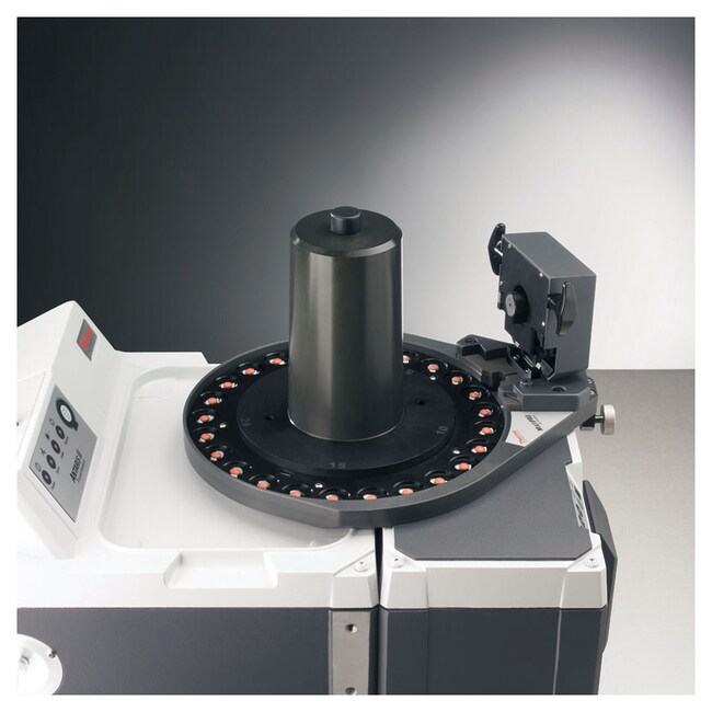 Thermo Scientific™ MultiPro Autosampler for Antaris II improves quality control efficiency by automating the analysis of tablets, softgels, solids, and powders in vials utilizing both diffuse reflectance and transmission techniques. The MultiPro Autosampler combines the capabilities of the Antaris Integrating Sphere for diffuse reflectance analysis and the Antaris Tablet Analyzer for transmission analysis of tablets and solids. The MultiPro Autosampler provides efficient, computer-controlled, nondestructive quality-control analysis.