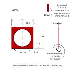 Press-to-Seal™ 黏性硅胶隔离器(单孔,直径 20 mm,深度 0.5 mm)