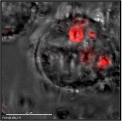 Fluorescent Bioparticles have been employed to study phagocytosis by fluorescence microscopy, quantitative spectrofluorometry, and flow cytometry. We offer E.Coli, S. aureus, and zymosan BioParticles conjugates covalently labeled with a variety of different fluorophores.