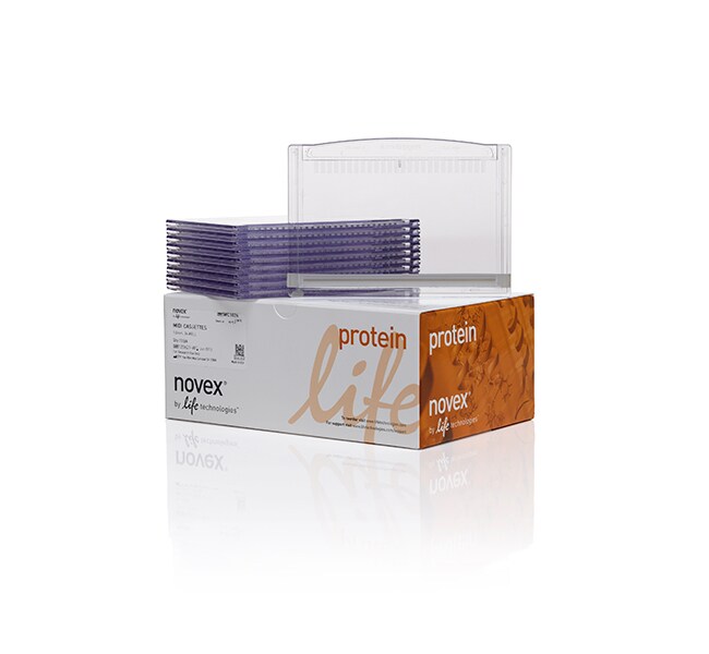These empty gel cassettes are pre-assembled, single-use, empty plastic cassettes with combs that allow you to pour your own midi-size gels. An XCell4 SureLock™ Midi-Cell Runner is required to run the gels. The cassettes are sealed on three sides to prevent leaking and do not require the use of a special casting stand. Gels poured in these cassettes are 1.0 mm thick. The cassettes have printed well outlines for easier gel loading.