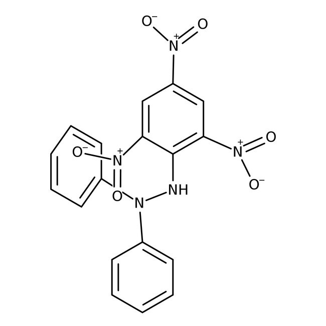 2,2-Diphenyl-1-picrylhydrazyl is used as a sensitive colorimetric free radical scavenger. It serves as a general antioxidant detector. It is utilized to monitor chemical reactions involving radicals as well as a standard of the position and intensity of electron paramagnetic resonance signals. Further, it is employed in the quantitative determination of aliphatic and aromatic thiols by indirect spectroscopy and for photometric determination of tocopherol.