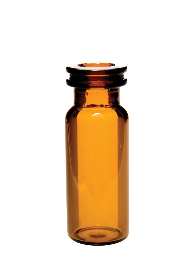 These high-quality amber glass 8mm crimp/snap top vials are ideal low-volume sample vials for 6mm, 7mm and 8mm autosampler trays.