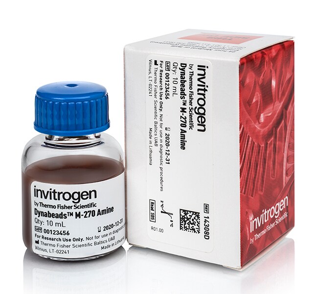These are hydrophilic Dynabeads™ (2.8 μm) with amine groups. The surface amino groups allow direct covalent binding of carbohydrates, glycoproteins and glycolipids through reductive amination of aldehydes.