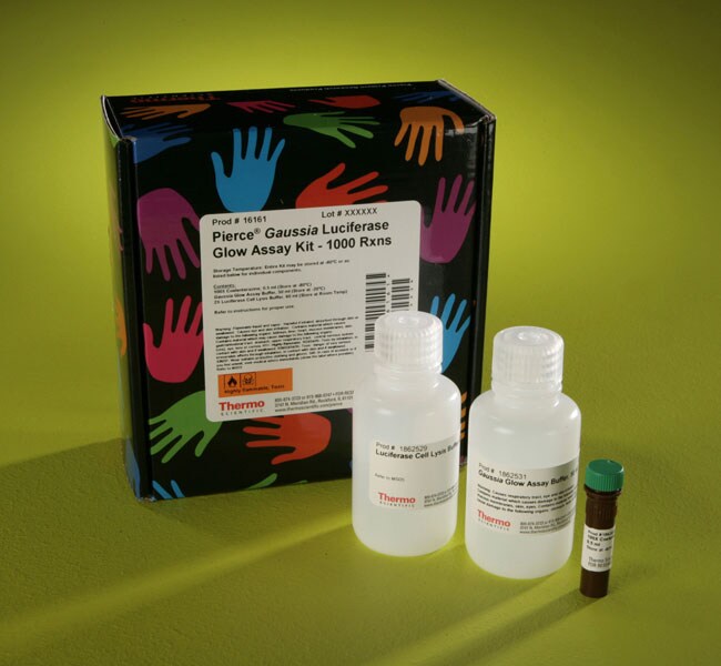 When used with Thermo Scientific Gaussia-Dura Luc Vectors, the kit provides an extremely sensitive bioluminescent reporter assay system for detection of secreted or intracellular luciferase activity from promoter or pathway activation with extended signal stability. The light output generated by the luciferase reaction (emission maximum of 485 nm) indicates that Gaussia luciferase was transcribed. This light emission can be correlated to the amount of luciferase protein produced, which in turn is proportional to the activity of the promoter for Gaussia luciferase expression and indicates that the regulatory region of the target gene was active. This reaction does not require adenosine triphosphate (ATP) or other cofactors. The kit includes cell lysis buffer, reaction buffer and substrate and can be used to detect the activity of any Gaussia luciferases or derivatives that use coelenterazine as a substrate.
