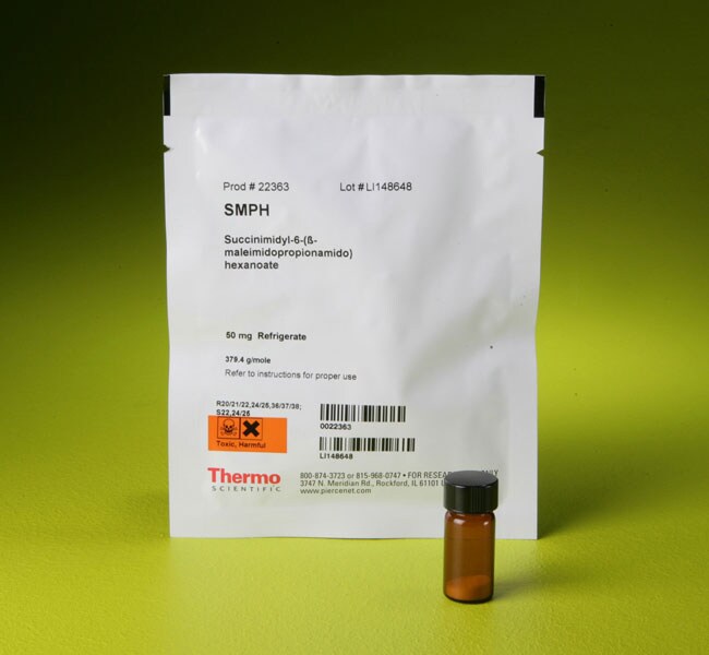 Thermo Scientific Pierce SMPH is an amine-to-sulfhydryl crosslinker that contains NHS-ester and maleimide reactive groups at opposite ends of a long spacer arm (14.2 angstroms).