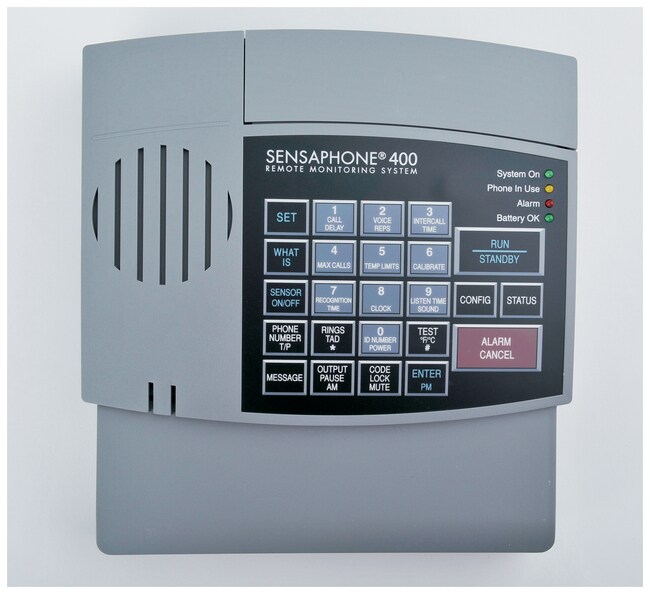 Call the lab or office from anywhere and Thermo Scientific™ Sensaphone™ Telephone Dialing Systems will state the status of every monitored condition. These systems interface with any standard touch-tone phone to notify of alarm conditions.