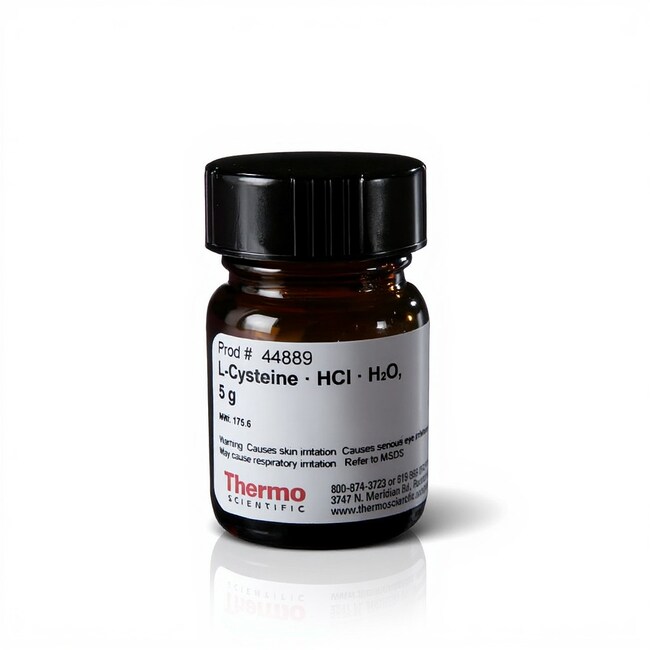 Thermo Scientific™ Pierce Cysteine-HCl is purified, crystalline cysteine hydrochloride salt (MW 175.6) that is useful as a sulfhydryl standard in assay with Ellman's Reagent, or as an additive in protein refolding experiments.