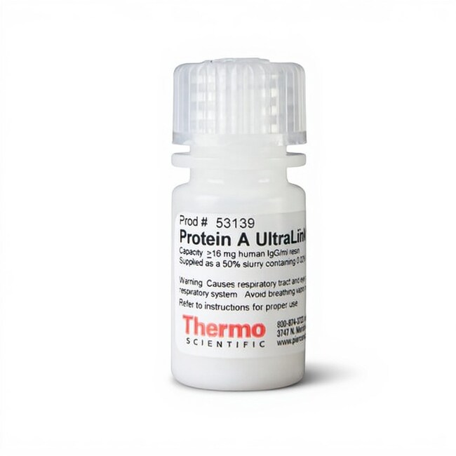 Thermo Scientific Pierce Protein A UltraLink Resin is an extremely durable beaded polyacrylamide support to which IgG-binding Protein A has been immobilized for use in IgG purification methods.