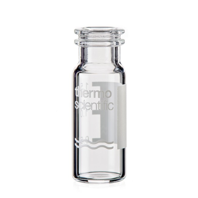 Use SureSTART™ Specification Certified 0.8 mL SureSTOP™ Snap Clear Glass Vial and 11 mm Flat Bottom Insert Snap Cap Kits with White Silicone/Red Polyimide Septa, Level 2 for PFAS analysis and Norm 1633. 100/pack.