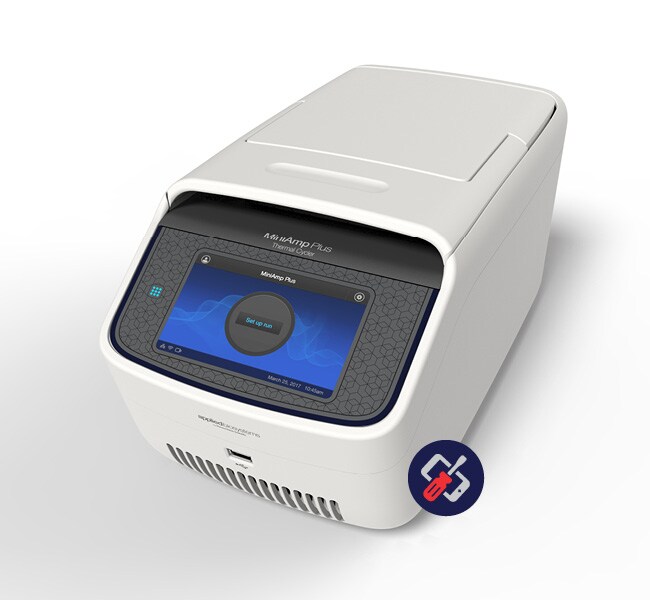 The Applied Biosystems MiniAmp Plus Thermal Cycler is a compact, accurate, and economical thermal cycler designed to fit your lab's basic thermal cycling needs. Innovations like a responsive color touch-screen and VeriFlex Blocks temperature-control technology enable simple, accurate optimization. The MiniAmp Plus Thermal Cycler can be accessed through Thermo Fisher Connect, giving you the freedom to design and securely upload your methods from any mobile device or desktop computer.