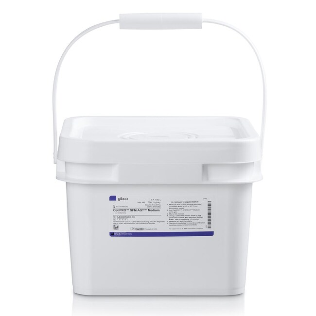 Gibco OptiPRO SFM AGT Medium is a flexible-format medium that is equivalent to OptiPRO SFM with the addition of Advanced Granulation Technology for simplified preparation. OptiPRO SFM is a serum-free, animal-origin-free culture medium designed for growth of several kidney-derived cell lines, including MDBK, MDCK, PK-15, and VERO, for virus or recombinant protein production. In addition, OptiPRO SFM has been used to successfully grow other cell lines, such as Hela, BHK-21, and COS-7.
