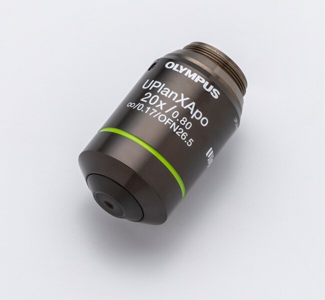 This 20X apochromat objective is from the new Olympus X line with exceptional optical performance. Through new manufacturing technology, the X-Apo objectives offer improved performance compared to standard Apo objectives in several critical areas: larger numerical aperture (NA), better image flatness, and a wider range of chromatic correction of 400–1,000 nm. These objectives deliver superb brightness and resolution across a large field of view for applications where the best possible image quality is desired. The Olympus objectives are compatible with all EVOS cell imaging systems. Our wide selection of EVOS and Olympus objectives satisfies needs across the spectrum of magnifications and optical specifications.