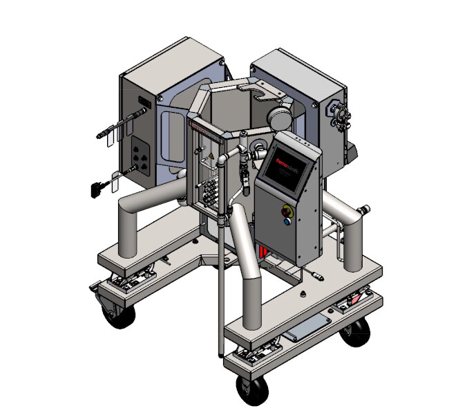 • Adjustable powder hanger for 1,000 L and higher mixers that fits 1, 5, and 25 kg Powdertainer BPCs