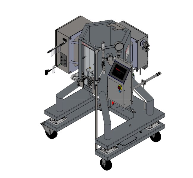 • Adjustable powder hanger for 1,000 L and higher mixers that fits 1, 5, and 25 kg Powdertainer BPCs