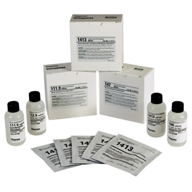 使用 Thermo Scientific™ Orion™ 电导率标准液和溶液,可确保较佳电导率探头维护和性能。提供电导率调节液、电导率标准液和 TDS 标准品,配合 Orion™ 2 电池电导率探头或 Orion™ DuraProbe™ 4 电池实验室和现场电导率探头一起使用。在校准、清洁和储存探头期间使用这些溶液,以帮助消除电导电极电池或灯泡表面的积聚,并获得准确、一致的读数。