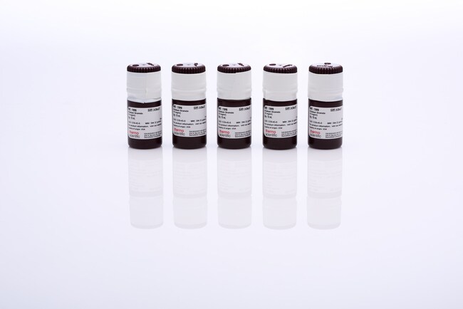 Ethidium bromide can be used to detect ssDNA, RNA, and dsDNA. This fluorescent dye intercalates between the stacked bases of nucleic acids, and exhibits an increased fluorescence at 590 nm. Ethidium bromide can detect down to ~1-10 ng/band of dsDNA in an agarose gel.