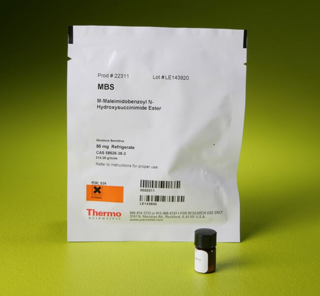 MBS (m-maleimidobenzoyl-N-hydroxysuccinimide ester) is covered under our general 1-year warranty and is guaranteed to be fully functional for 12 months from the date of shipment, if stored as recommended. Please see section 8.1 of our Terms & Conditions of Sale (https://www.thermofisher.com/content/dam/LifeTech/Documents/PDFs/Terms-and-Conditions-of-Sale.pdf) for more details.
