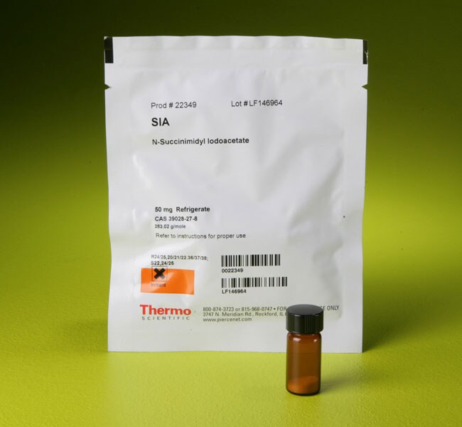 SIA (succinimidyl iodoacetate) is covered under our general 1-year warranty and is guaranteed to be fully functional for 12 months from the date of shipment, if stored as recommended. Please see section 8.1 of our Terms & Conditions of Sale (https://www.thermofisher.com/content/dam/LifeTech/Documents/PDFs/Terms-and-Conditions-of-Sale.pdf) for more details.