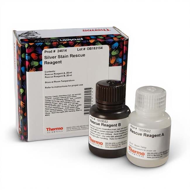Thermo Scientific Pierce 银染拯救试剂可以从不均匀和过度显影的银染聚丙烯酰胺电泳凝胶中去除不需要的背景。 Pierce 银染拯救试剂的特点:•易于使用—将试剂按建议的稀释比例混合,即可方便地回收因过度显影而形成深色背景的银染凝胶• 简单有效—在数分钟内消除背景信号,实现染色过程的快速且受控的逆转,以达到您的目标;在约 1