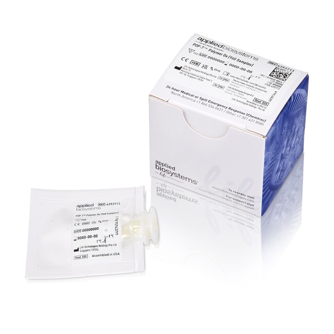 3500 Dx Series POP-7™ and POP-6™ are separation matrices for the 3500 Dx/3500xL Dx Genetic Analyzers. They are conveniently offered in easy-to-use pouch packages with either 960 samples (maximum) or 384 samples (maximum) size formats. Each polymer is optimized for specific applications.