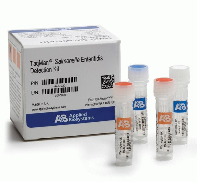 Each individual component in the TaqMan Pathogen Detection Kits is color-coded in order to best distinguish between the 2X Environmental Master Mix, the negative control and the 10X Target Assay Mix (TAM). Yellow coded vials are 2X Environmental Master Mix, the white coded vial is the negative control solution, and the 10X Target Assay Mix (TAM) which is associated with a specific organism is a gray-labeled vial.