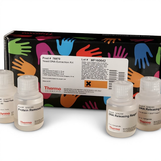 Thermo Scientific Pierce 酵母 DNA 提取试剂盒采用 Thermo Scientific Y-PER 试剂,可快速轻松地裂解酵母细胞以释放 DNA 用于研究。