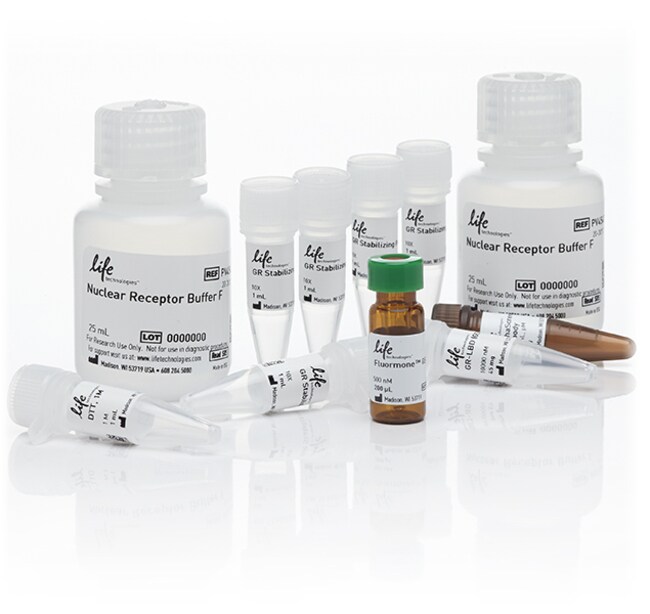 LanthaScreen™ TR-FRET 糖皮质激素受体竞争性结合检测试剂盒为高通量筛选 (HTS) 糖皮质激素受体 (GR) 配体提供了灵敏可靠的方法。该试剂盒使用谷胱甘肽 S 转移酶 (GST)(也可单独提供)标记的人 GR 配体结合结构域 (GR-LBD)、铽标记的抗 GST 抗体和均一混合读数检测形式的荧光小分子 GR 配体 (Fluormone™ GS1)。