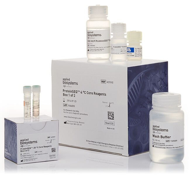 The ProteinSEQ™ Protein A Core Kit is a partial kit that enables users to customize their ProteinSEQ protein measurements for leeched Protein A, or any other ligand used in their purification columns. It contains the buffers and reagents, but not the antibody-loaded capture beads, needed to enable PCR-based quantitation of Protein A or any other purification ligand. The kit contains sufficient reagents for 200 reactions. For a kit that includes Protein A capture beads and standards, for use in the quantitation of Protein A, please see the ProteinSEQ™ Protein A Quantitation Kit (Cat. No. 4469343).