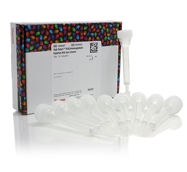 Mini columns can deplete up to 10 µL (600 µg) of plasma or serum; midi columns can deplete up to 100 µL (6000 µg) of plasma or serum.