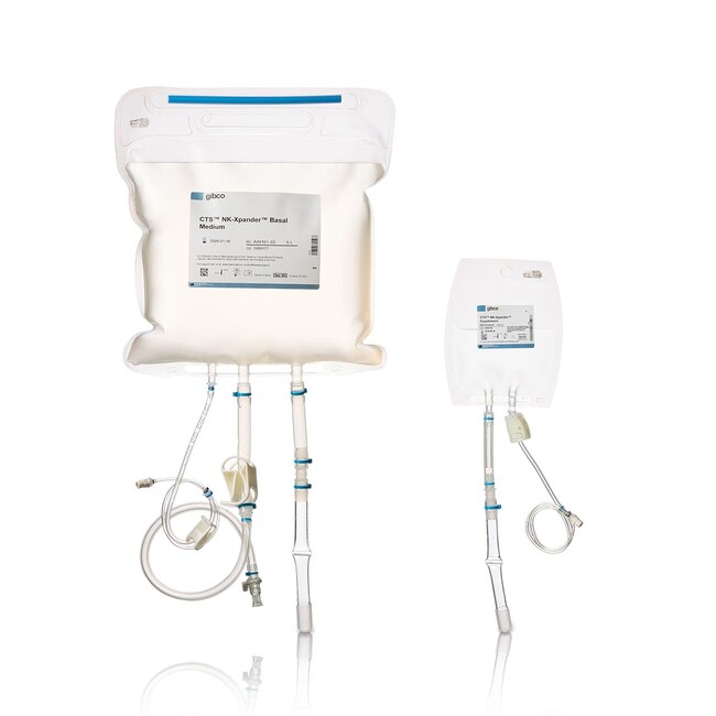 CTS NK-Xpander 培养基有 500 mL(瓶装)和 5 L(袋装)规格可供选择,便于工艺开发和封闭系统生产规模扩大。5 L 生物工艺容器样品仓由 Aegis 5-14 薄膜制成,包括无菌、可焊接的无 DEHP PVC 管路(带鲁尔锁)和 C-Flex™ 管路(带 MPC 快速连接器),为您的生产工艺提供多种连接选项,包括与 CTS Roteat 逆流离心系统的兼容性。