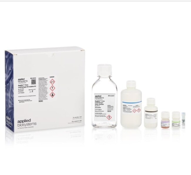 • 160 mL 结合溶液 • 300 mL洗涤 I 溶液 • 6 mL 结合磁珠 • 3 mL 蛋白酶 K • 36 mL 洗脱缓冲液 • 30 μL 蛋白酶 K 染料 在 15 – 25°C 下储存