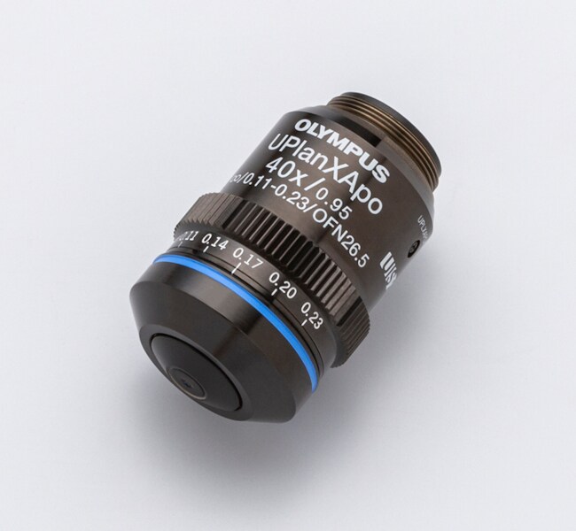 这款 40X 复消色差物镜来自新的 Olympus X 系列,具有出色的光学性能。它配备了可调卡圈,可通过厚度为 0.11 至 0.23 mm 的盖玻片灵活成像。借助新的制造技术,X-Apo 物镜在几个关键方面的性能相较于标准 Apo 物镜得到了改善:更大的数值孔径 (NA)、更佳的图像平度和更宽的色彩校正范围 (400–1,000 nm)。这些物镜在大视野范围内提供出色的亮度和分辨率,适合需要极佳图像质量的应用。Olympus 物镜与所有 EVOS 细胞成像系统兼容。有各种 EVOS 和 Olympus 物镜可供选择,满足了一系列放大倍数的光谱和光学规格的需求。