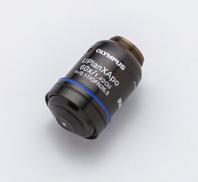 This 60X apochromat objective is from the new Olympus X line with exceptional optical performance. Through new manufacturing technology, the X-Apo objectives offer improved performance compared to standard Apo objectives in several critical areas: larger numerical aperture (NA), better image flatness, and a wider range of chromatic correction of 400–1,000 nm. These objectives deliver superb brightness and resolution across a large field of view for applications where the best possible image quality is desired. The Olympus objectives are compatible with all EVOS cell imaging systems. Our wide selection of EVOS and Olympus objectives satisfies needs across the spectrum of magnifications and optical specifications.