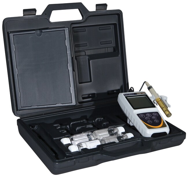 描述CON 150 测量仪套件:测量仪,电导池 (K = 1.0),Grip-Clip™,两节 AA 电池,硬质便携箱,校准液