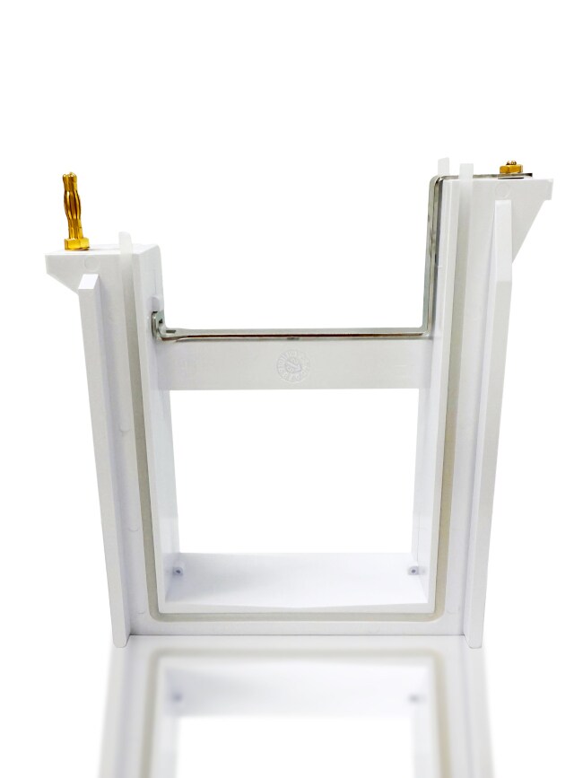 The updated Buffer Core design incorporates a stainless-steel cathode bar, platinum wire anode electrode, gold terminals, and durable silicone gaskets, offering a precise and leak-free seal during operation. This version features enhanced robustness and improved electrical efficiency for faster gel separations.