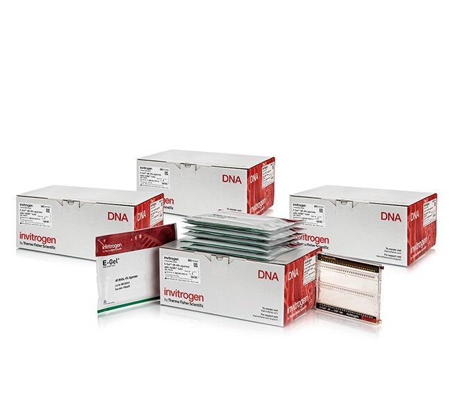 Invitrogen E-Gel 48 高通量预制琼脂糖凝胶(含 SYBR Safe DNA 凝胶染色剂)设计用于进行快速、便利和危害更小的 DNA 样品电泳。每个 E-Gel 琼脂糖凝胶盒均包含有效凝胶分离和分析所需的所有组分和染料—,只需上样并开始电泳即可。