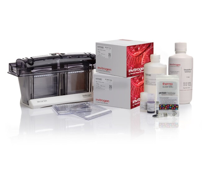 •便利性—与小型凝胶槽配合使用,实现简单的并行样品上样 用于蛋白表达的 Bolt Mini Bis-Tris 迎新套装包含: