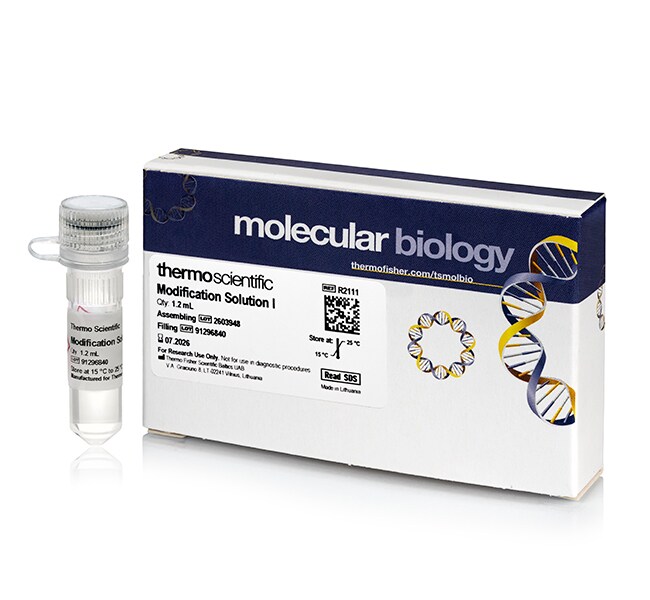 Thermo Scientific EpiJet Modification Solution II is a component of the EpiJET Bisulfite Conversion Kit and may be purchased separately. Provided in 0.35 mL aliquots.