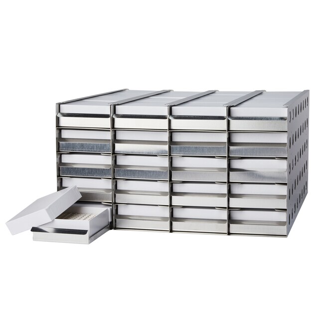 Thermo Scientific™ 超低温冰箱搁架套件(带冻存架和冻存盒)配备了带隔板的 2 in. 冻存盒,可以极大程度地扩展存储空间。