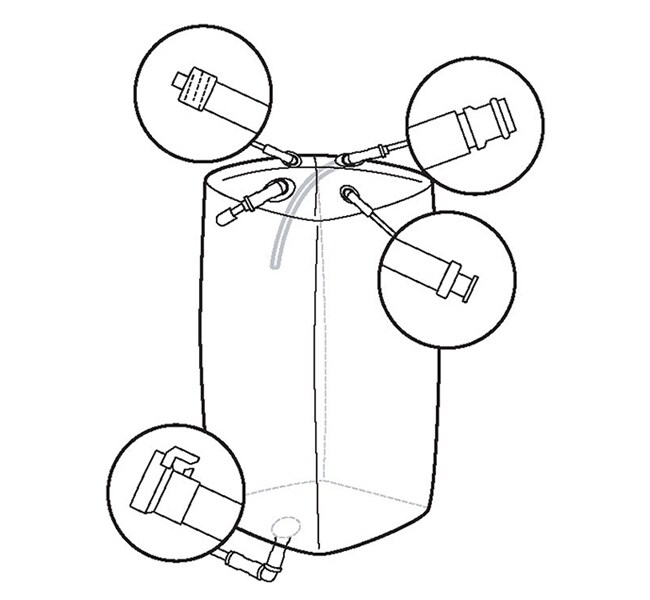 •方形管设计,聚乙烯端口位于 BPC 顶部,便于使用