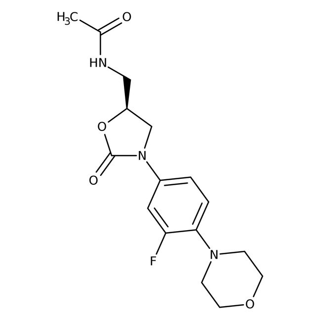 Linezolid, Zyvox, CAS # 165800-03-3 is a synthetic oxazolidinone antibiotic. | CAS: 165800-03-3 | C16H20FN3O4 | 337.35 g/mol
