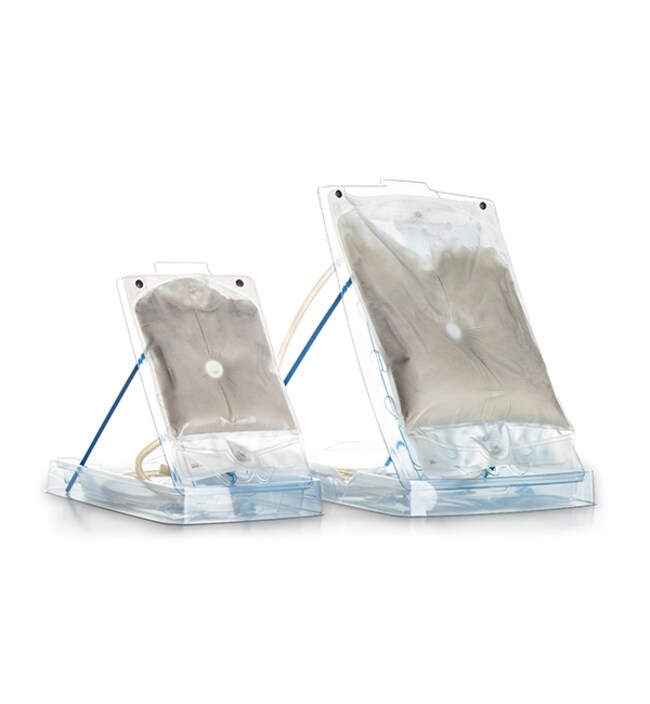 For smaller-scale or larger-scale applications, the Harvestainer system is ideal for in-line microcarrier separation. The 3 L and 12 L Harvestainer systems consist of a pre-assembled bioprocess container (BPC) and tray in a single-use unit, where the tray acts as the secondary containment device. The 25 L and 50 L Harvestainer systems consist of a 3D BPC with a drum as the secondary containment device. The BPC features a dip tube with dipwell design for better drainage and minimal manipulation.