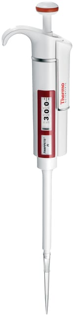 Thermo Scientific™ Finnpipette™ F3 可变容量单通道移液器使用舒适,可以在每日移液操作中发挥理想作用。Finnpipette F3 移液器具有宽阔的、支持彩色编码的指靠和人机工效学手柄设计。Finnpipette F3 移液器可以用于单个和多通道模具。
